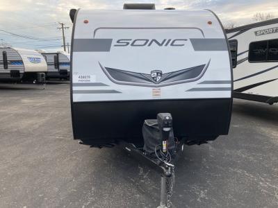 With any Sonic Lite travel trailer by Venture RV, you begin with Next Generation in RV frame technology with the NXG frame, AZDEL Onboard composite panels, tongue and groove plywood floor decking, and a tucked rear bumper. The Fall Package 1.6 provides a motion light in the bathroom, a deep round stainless steel sink with cover in the kitchen, and the JBL Flip Bluetooth Speaker which allows you to use smartphone technology in the RV, plus a lighted power tongue jack, and WIFI prep to mention a few features. Get ready for comfort and style in a Sonic Lite ultra-lightweight, single-axle travel trailer of your choice!