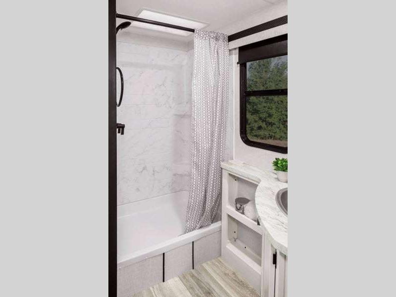 Both the Travel Trailer and Fifth Wheel deliver the same Venture RV quality and comfort. Built with Azdel laminated sidewalls, an NXG Huck bolt frame, and the Weather Shield Package, they’re designed to come with you on your adventures when you want to get away! Inside, enjoy a modern farmhouse design with hand glazed cabinets, Beauflor flooring, and a Serta memory foam mattress. Entertainment and convenience are no issue with a Smart TV with sing arm, JBL sound bar and flip Bluetooth speaker, WiFi prep, and a 200W solar panel. Outside, features like LED power awnings, slam-latch baggage doors with magnetic catches, and a friction-hinge entry door make every trip effortless and enjoyable.